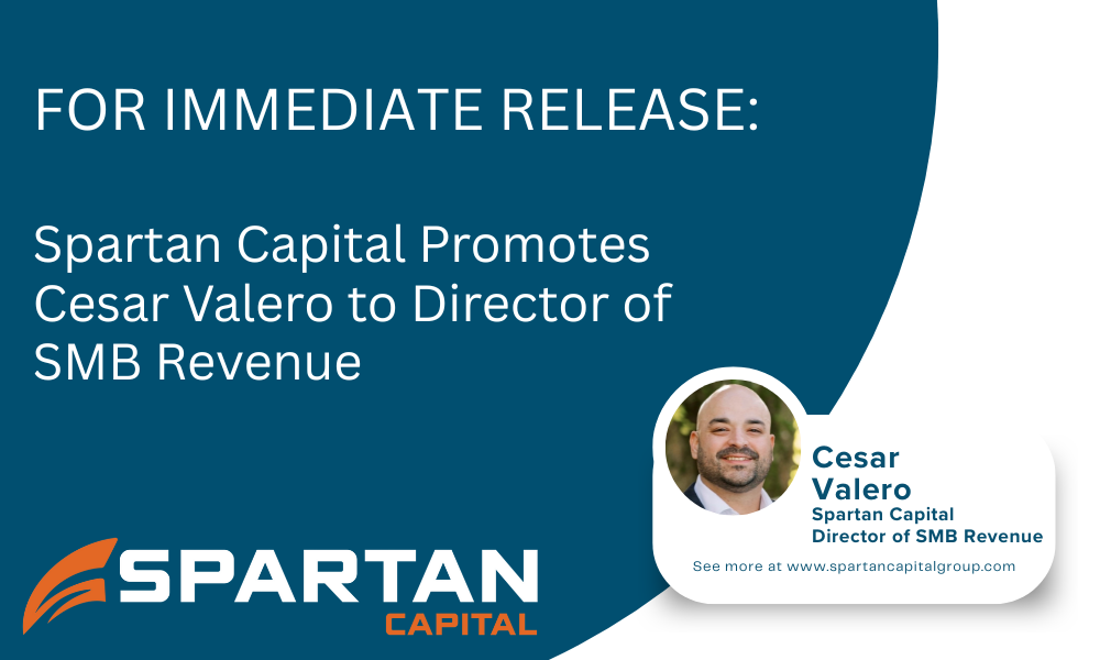 Spartan Capital is proud to announce the promotion of Cesar Valero to Director of SMB Revenue, a move that reflects the company’s continued investment in leadership, growth strategy, and client-first innovation in the alternative funding space.